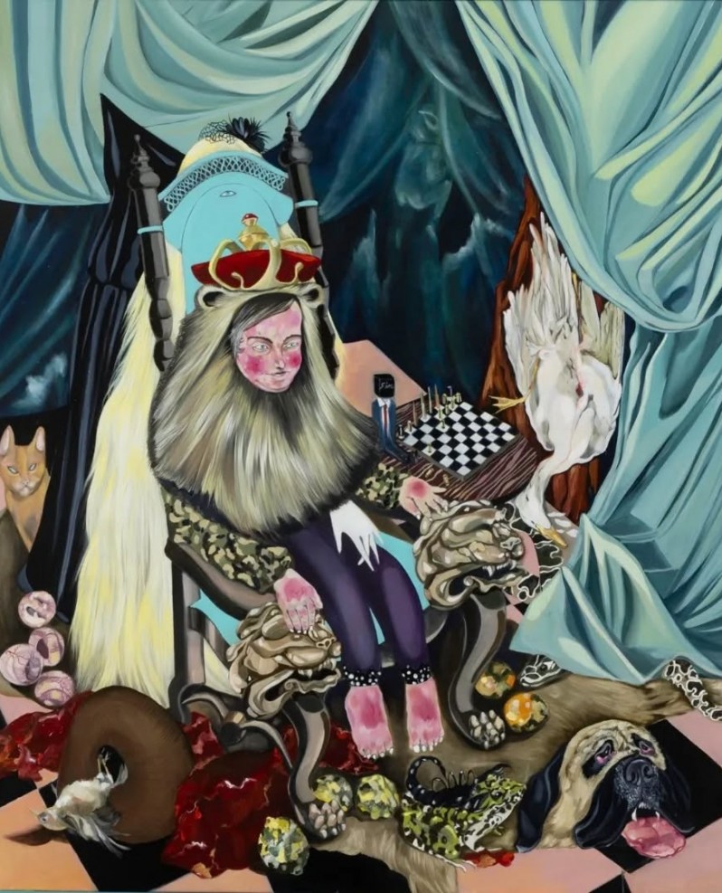 El año pasado, en una entrevista con Infobae, la propia artista se encargó de explicar con detalle el cuadro en el que Milei aparece representado como un rey tenebroso.
