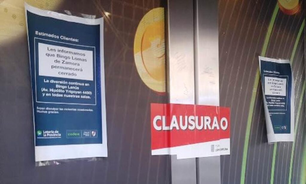 El Municipio de Lomas de Zamora clausuró por segunda vez en el año las actividades del bingo de Lomas, situado en la avenida Meeks 155, debido a que el lugar presenta irregularidades en el sistema de seguridad.