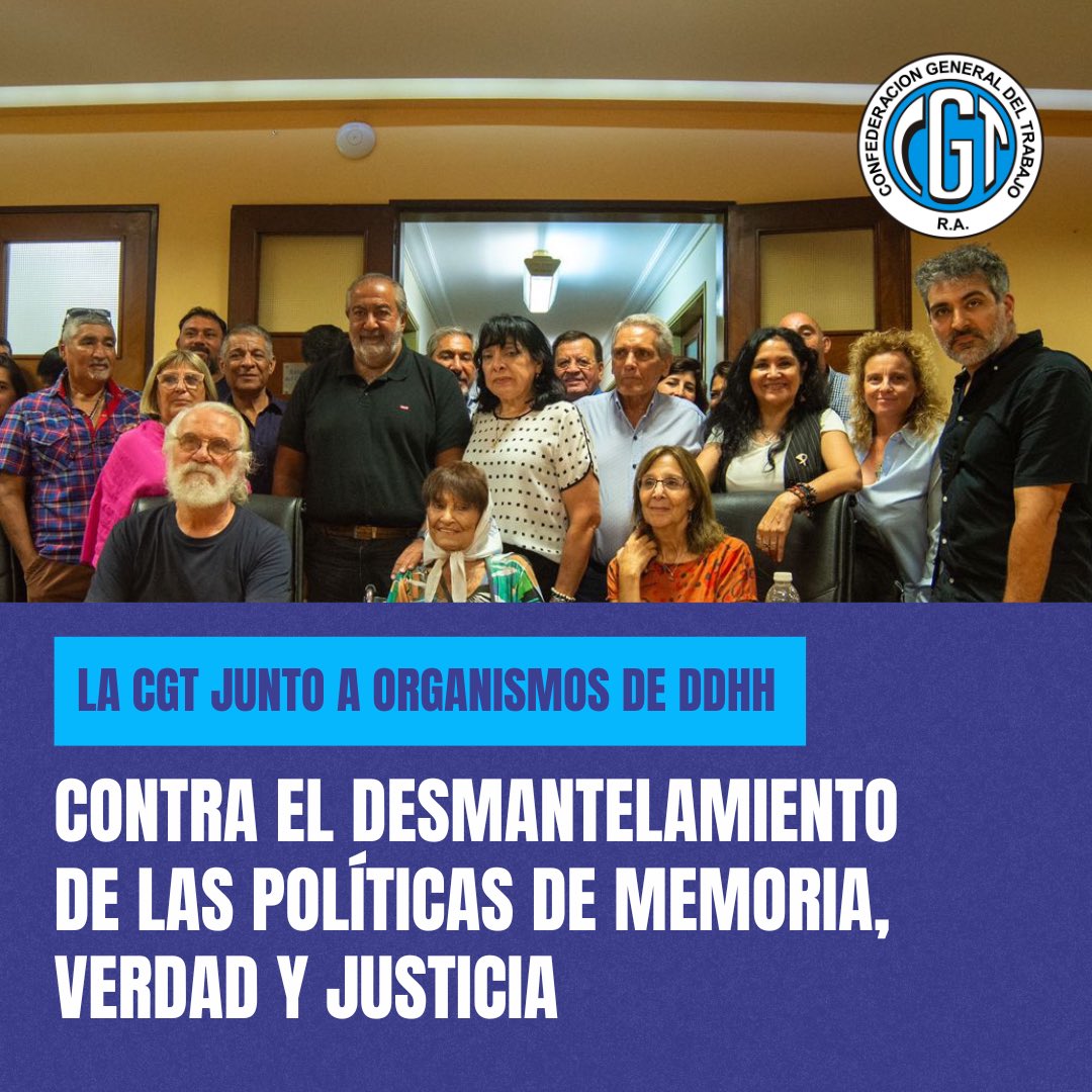 La CGT recibió a la Madre de Plaza de Mayo Línea Fundadora, Taty Almeida, y a integrantes de la Mesa de Organismos de Derechos Humanos y manifestó su apoyo a los organismos de derechos humanos contra el desmantelamiento de las políticas de Memoria, Verdad y Justicia.