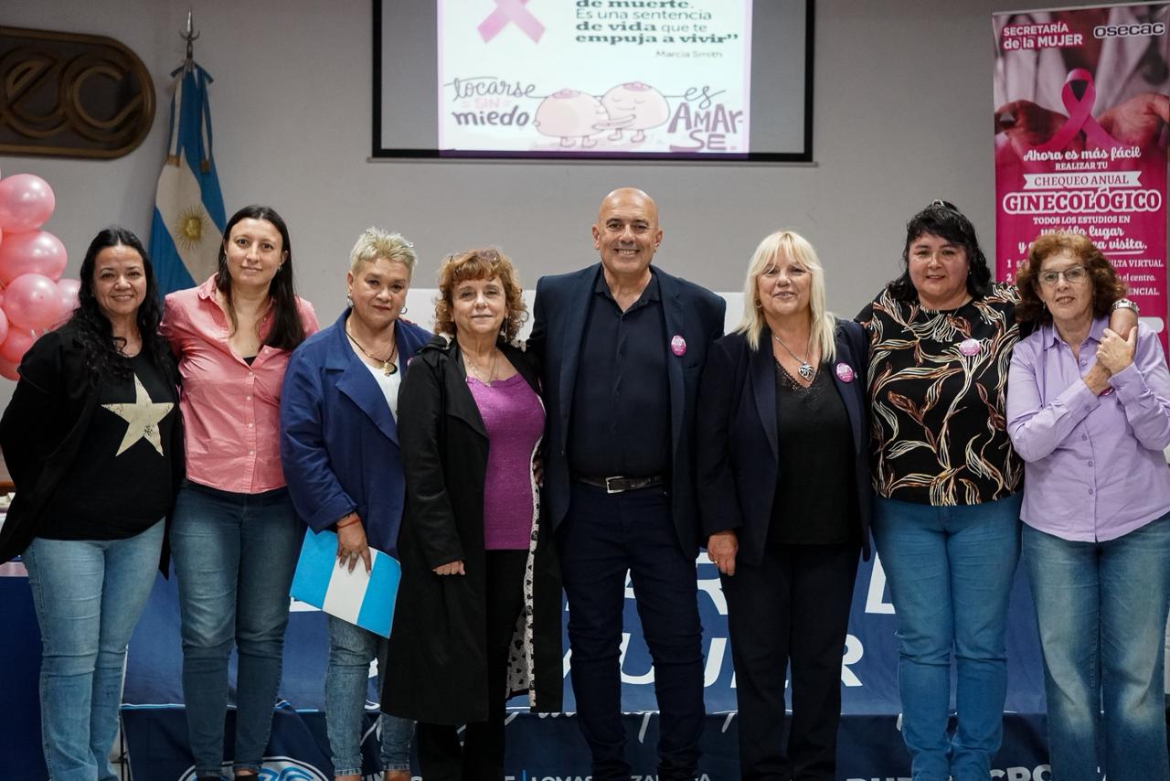 La Dra. López brindó una exposición clara y accesible sobre las características del cáncer de mama, los factores de riesgo y las prácticas preventivas necesarias para su detección temprana. Por su parte, Mónica Macia detalló la cobertura médica que ofrece OSECAC, subrayando la importancia de acceder a controles periódicos y estudios de diagnóstico.