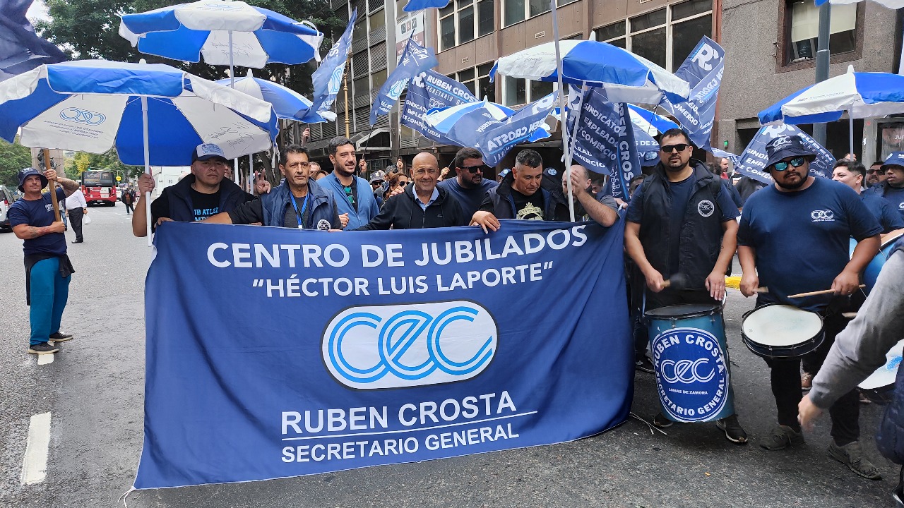 En el marco de la movilización convocada por la CGT, el Sindicato de Empleados de Comercio de Lomas de Zamora, Esteban Echeverría y Ezeiza, marchó hacia Plaza Congreso en apoyo al reclamo que todos los miércoles vienen realizando los jubilados.
