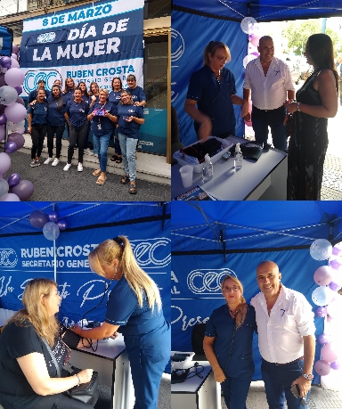 “Desde hace muchos años el 8 de marzo es una fecha central en el calendario de todos aquellos que entendemos que una sociedad más justa, es imposible sin igualdad real de derechos, sin importar el género”, expresó Rubén Crosta titular del gremio mercantil. “Este año, a instancias de las compañeras que intervienen activamente en la Secretaría de la Mujer, decidimos instalar una posta sanitaria en la puerta del gremio, de tal manera que todas las trabajadoras pudieran acercarse y acceder rápidamente a una consulta básica con un profesional de la salud, evacuar dudas y tomarse la presión, al tiempo que, en caso de necesitarlo, también pudieran tramitar un turno médico en nuestros policonsultorios. Somos conscientes que muchas veces, en la dinámica laboral del día a día, muchas compañeras dejan de lado el control de su salud y a largo plazo pagan las consecuencias”.