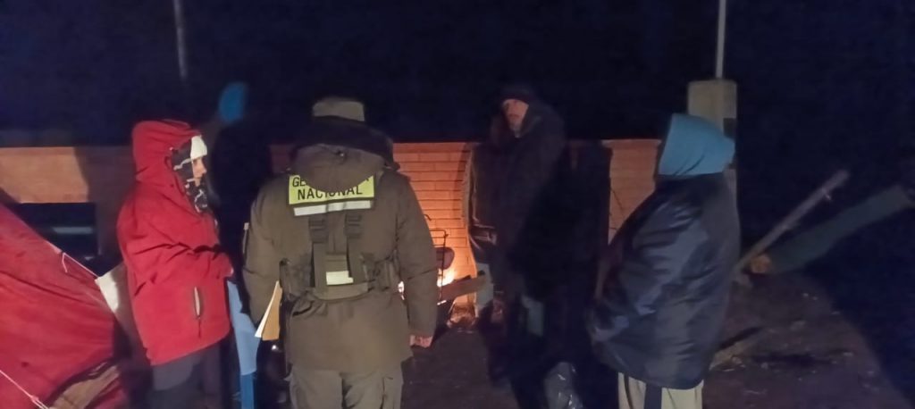 El día de hoy, a pesar de la escasa presencia de personas en el acampe situado en la banquina de la ruta, la Gendarmería Nacional se acercó al lugar en nombre de la Secretaría de Ambiente de la Provincia. La intervención se llevó a cabo debido a la presencia de un pequeño fogón, el cual, aunque no presentaba riesgo alguno, fue motivo de atención por parte de las autoridades locales.