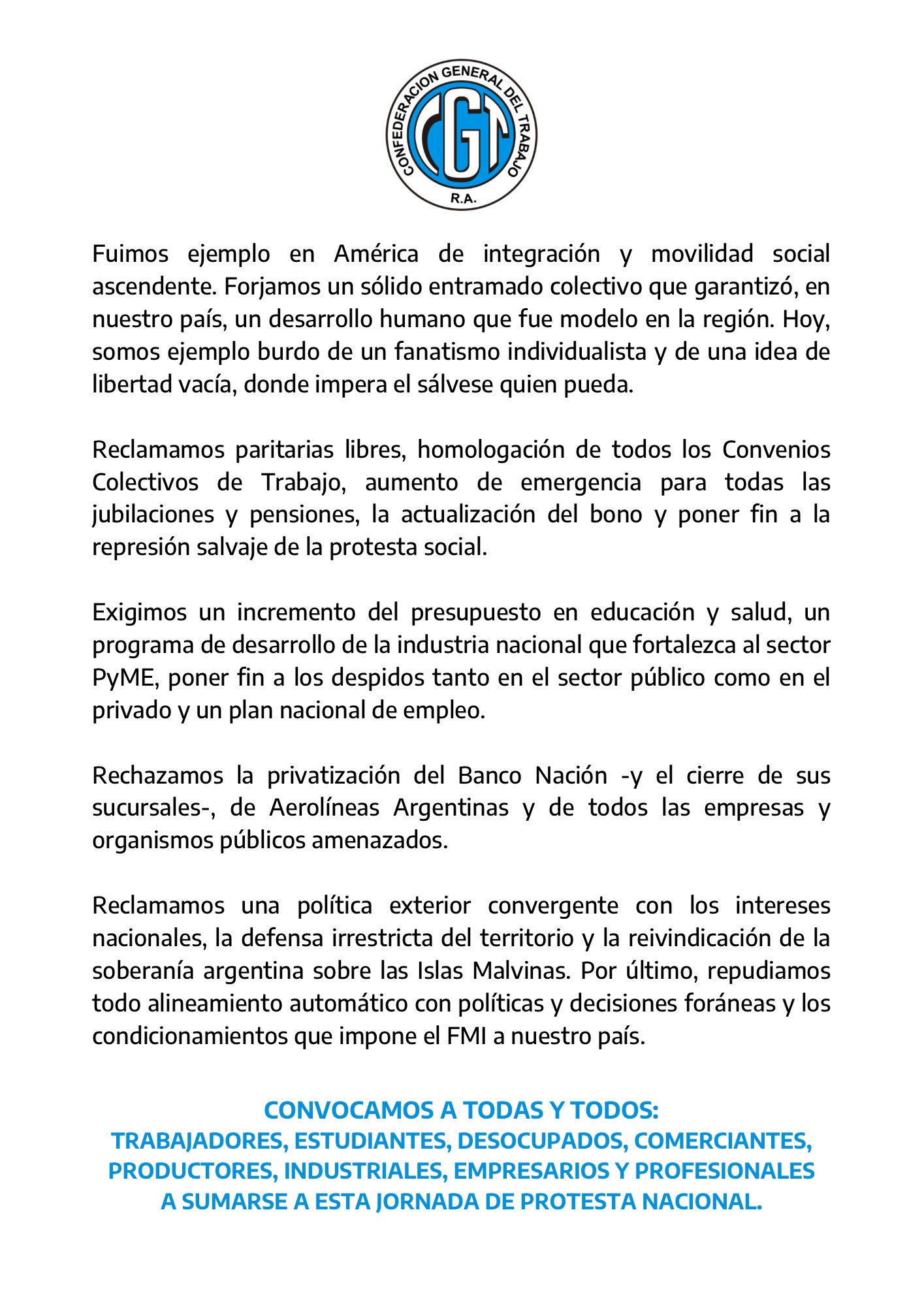 Compartimos Comunicado oficial de la Confederación General de Trabajadores de la República Argentina.